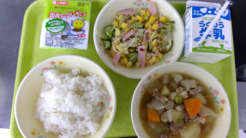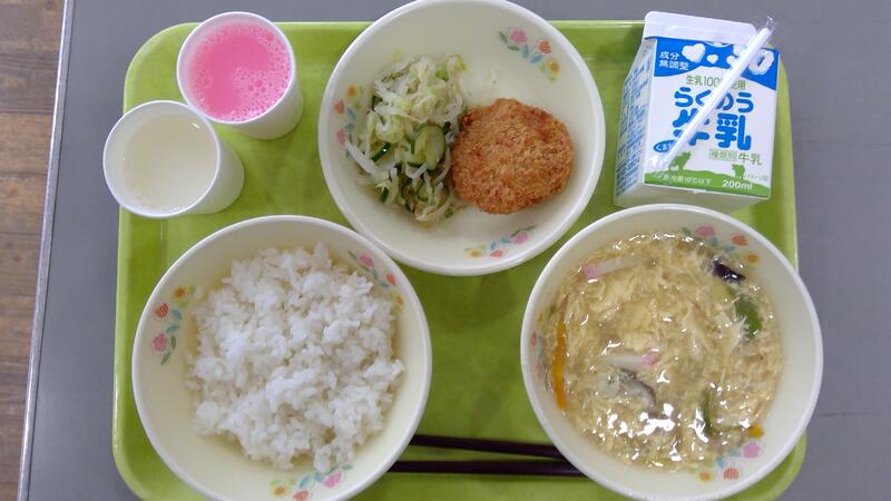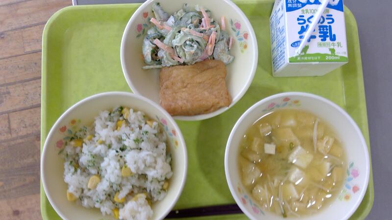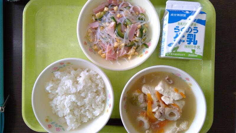 今日の献立は、麦ごはん、ふりかけ、新じゃがそぼろ煮、ごまネーズ和えでした。1年生の子どもたちが片付けに来たときに「おいしかったです!」と元気に感想を言ってくれました。今日のような和風メニューも大好きな子どもたち、素晴らしいです