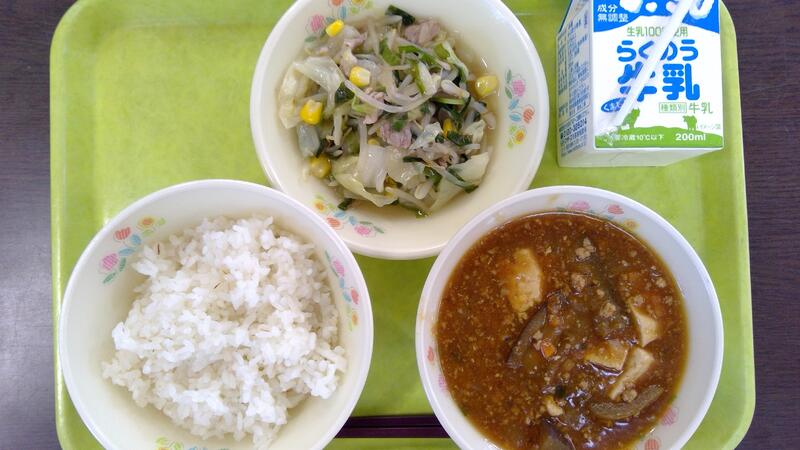 今日の献立は、麦ごはん、麻婆なす、ニラともやしのソテーでした。今日は苦手な子どもたちが旬の旬の「なす」を使ったメニューでした。太めのなすだったので、なかなかの存在感を発揮していました。1年生教室では「なすきらいですー」という声がちらほらと聞かれましたが、みんな頑張ってチャレンジしてくれて、「今日ですきになりました」と好き嫌いを克服したお友だちもいました。