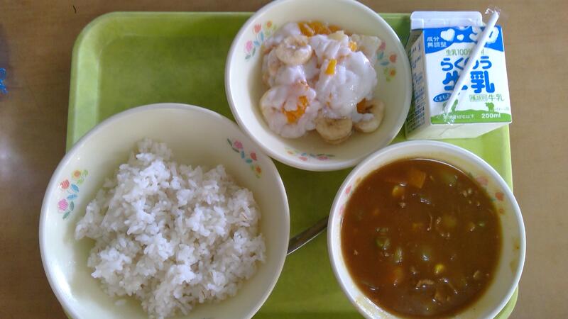 今日の献立は、カレーライス、フルーツヨーグルトでした。