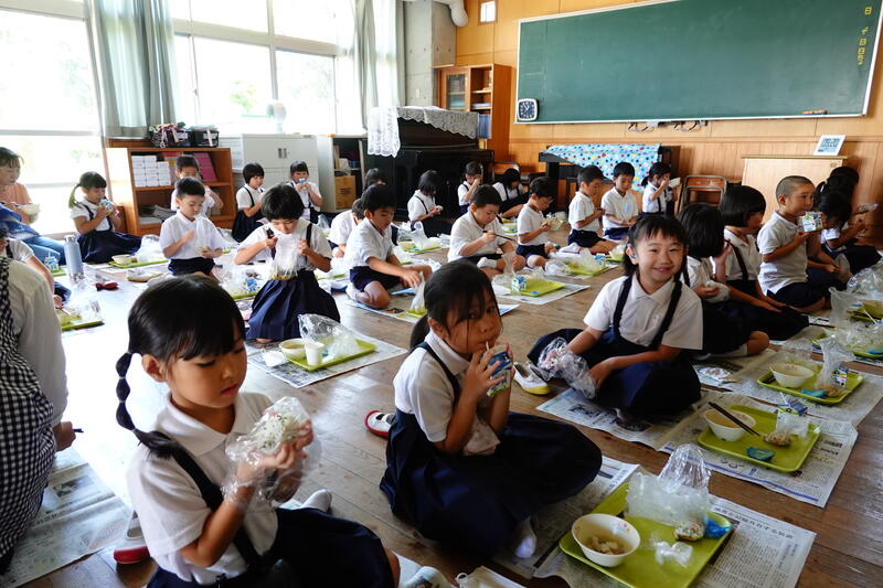 2学期が始まりました。今学期もどうぞよろしくお願いします。2学期最初の給食は、9月1日の防災の日にちなんだ、「避難所体験給食」でした。今年のテーマは①水が使えないときは、と、②避難所でも野菜を食べよう、でした。