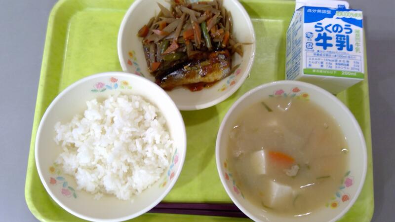 今日の献立は、ごはん、さんまのおかか煮、きんぴらごぼう、豚汁でした。今日の力作「きんぴらごぼう」は11キロの大量のごぼうをすべて手切りで千切りにしました。さんまはたっぷりのかつお節を入れたタレで煮込み、高圧処理をされてますのでやわらかく、骨まで丸ごと食べられます。5年生の今津っ子が「今日みたいな献立が好きです!」と言ってくれました。和食好き、いいですね。