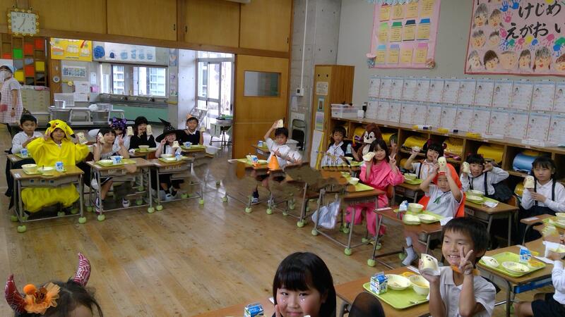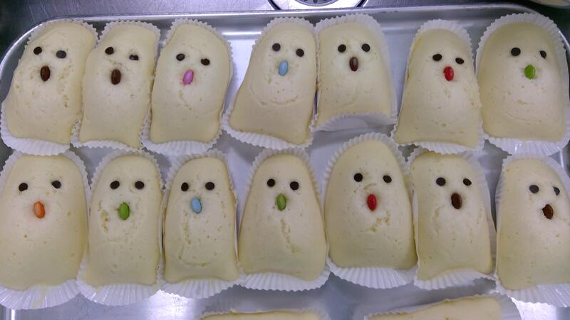 明後日のハロウィンメニュー「オバケーキ」を見学旅行のため不在の3年生に先行実施しました。みんな大喜びでした。
