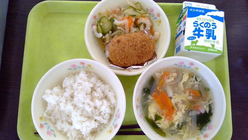 今日の献立は、ミルクパン、かぼちゃフライ、レタス、はるさめスープでした。昼休みに食缶を返却しに来た子どもたちが口々に「南瓜フライがとてもおいしかったです!」と感想をくれました。かぼちゃフライは昭和の時代から大人気の献立です。保護者の皆様も学校給食で食べたことがあられるのではないでしょうか。。。