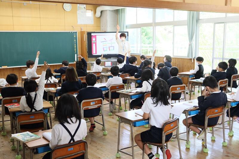 子どもたちは学習に集中して頑張っていました。1年生も45分の授業は初めてですが、しっかりと頑張っていました。