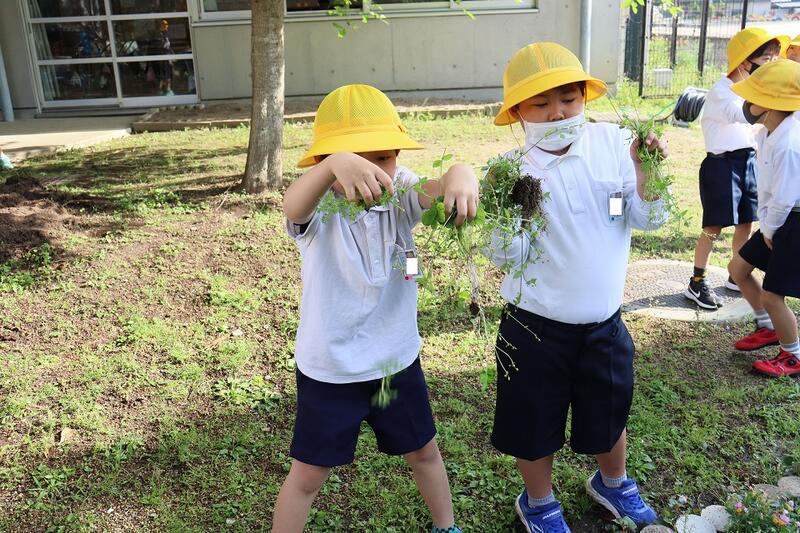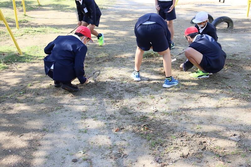 今日も、運動場や低学年棟周りの草取りを頑張ってくれていました。