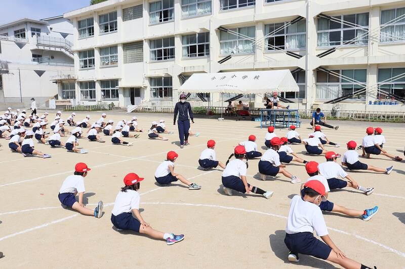4時間目は、中学年が練習をしていました。低学年と同じく徒走とリレーの練習をした後、表現運動の練習でした。大人では膝が痛むような動きも何のその、しっかりと力強い動きができていました。