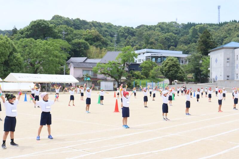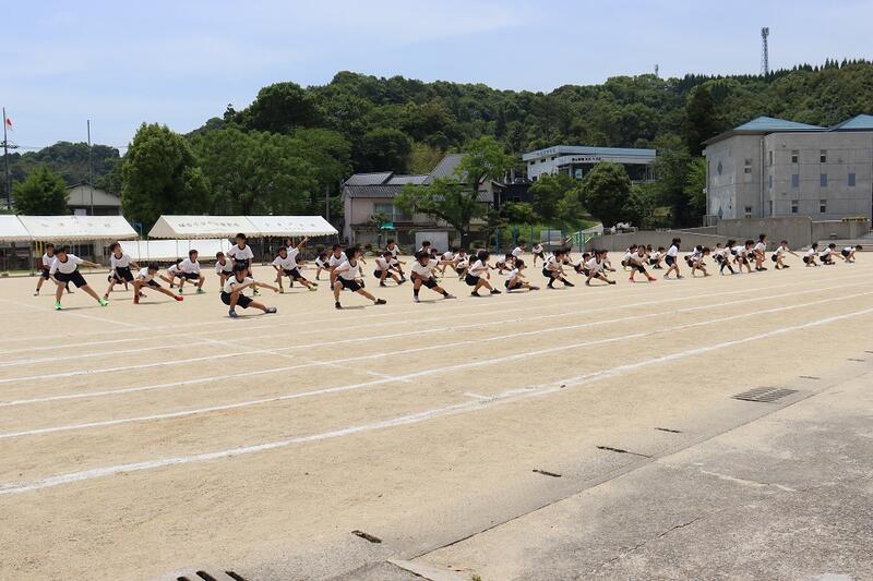 3時間目に低学年、4時間目に中学年、5時間目に高学年が運動場で運動会練習に頑張りました。