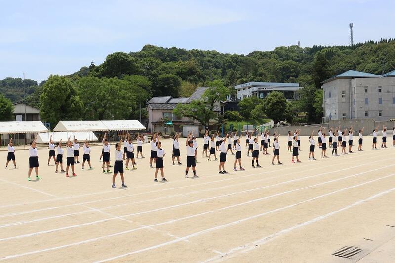 今日は、開会式の最後の準備運動をした後に退場、そして応援合戦の練習でした。集中して練習できているので、たった4回の練習でも、大きく成長した姿を見せてくれました。