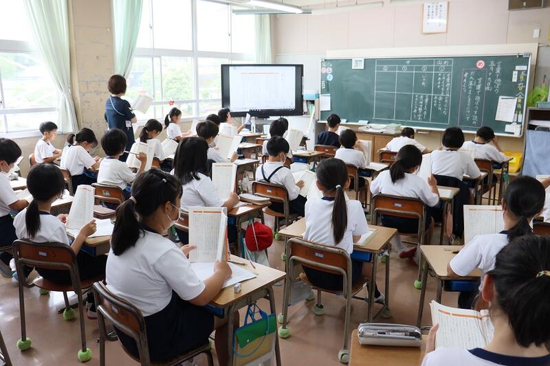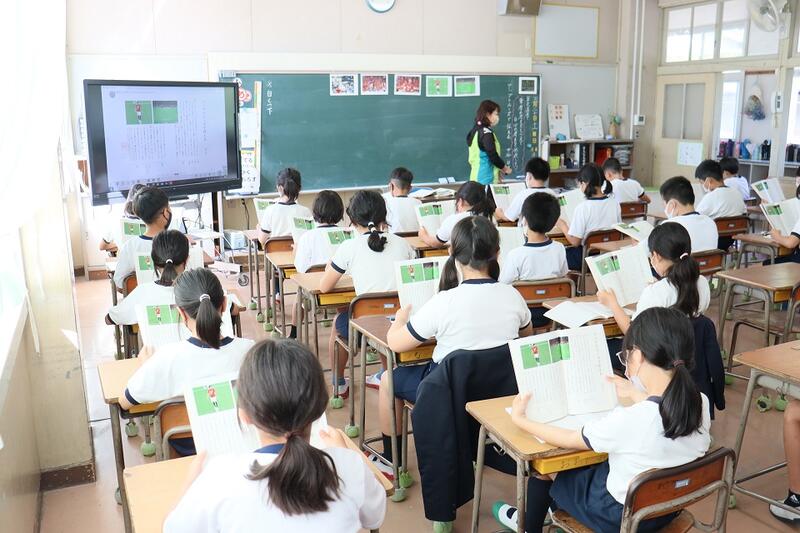 1年生教室では、国語の時間でした。きちんと教科書をもち、すばらしい姿勢で音読をしていました。日々成長中です。