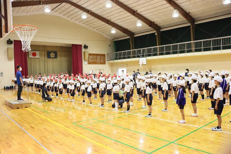 体育館へ行ってみると、既に4年生以上が整列し、静かに待っていました。早く来た学年から静かに待つことで、全体が静かに集合できる見本でした。