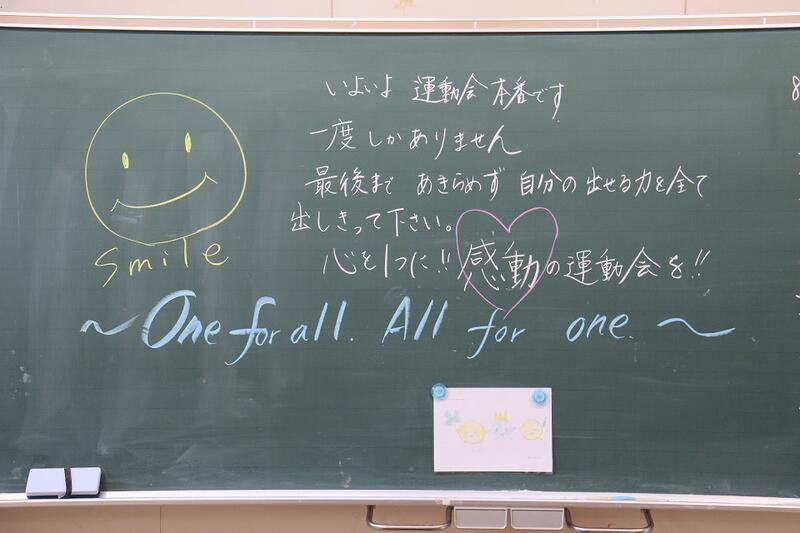 今日は運動会。朝、教室で子どもたちを出迎えたのは、担任の先生から、子どもたちへのメッセージでした。