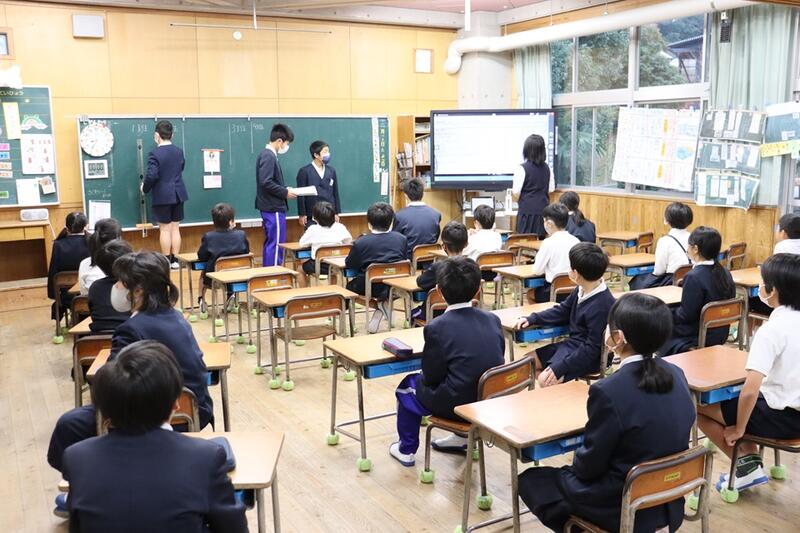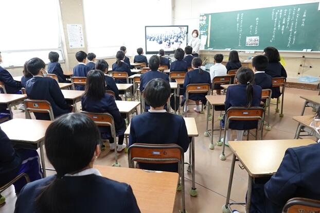 今津っ子のみんなは、各教室で電子黒板をしっかりと見つめながら、放送を聞いていました。