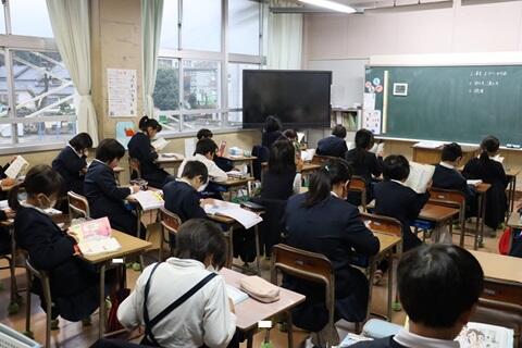 3年生教室で、国語の教材「カンジーはかせの音訓かるた」を学習して自分たちでもかるたを作り、「かるた取り大会」をしていました。楽しい中にも、白熱したかるた取り大会でした。