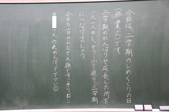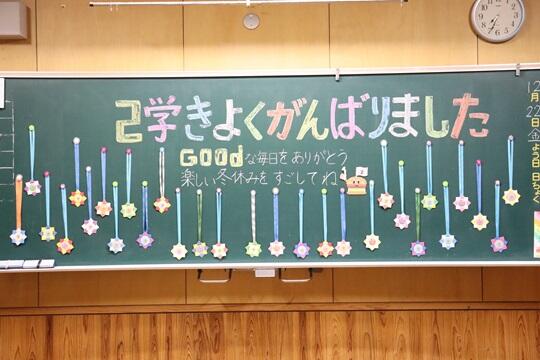 その後、校長から2学期に頑張り成長した子どもたちへの賞賛と冬休みに命を守るために守ることの話、生徒指導担当から冬休みの安全な生活やよりよい生活にするための話、養護教諭と栄養教諭から健康な生活についてのビデオと続きました。