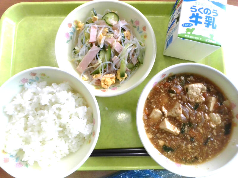 今日の献立は、林田さんのごはん、麻婆豆腐、バンサンスーでした。今年度も今泉の林田様が育てられているミルキークイーンを月に一度納めていただけることになりました。粘り気が強くもちもちしているのが特徴で、子どもたちも大好きです。