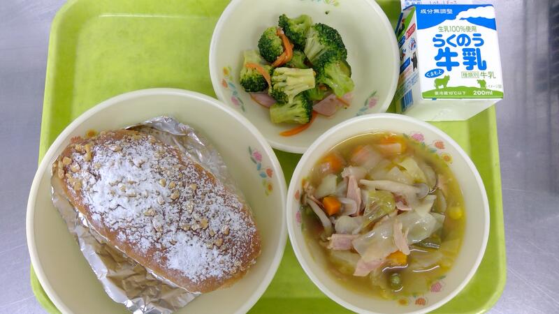 今日の献立は、コッペパン、みかんジャム、グラタン、オニオンスープでした。グラタンのホワイトソースは給食室の手作りです。味付けはコンソメと塩で優しい味に仕上げました。子どもたちも大好きなメニューでパクパクと食べてくれました。