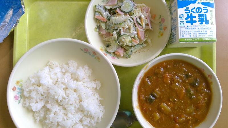今日の献立は、夏野菜カレー、ゴーヤのごまネーズサラダでした。年に一度のゴーヤデー。6年生は、カレーでテンションが上がりつつも、副菜のゴーヤに肩を落としていた人が多数いたようです。しっかりと塩もみをして極力苦みを取り除いたつもりでしたが、、、ゴーヤはビタミンCの王様!夏の疲れを取り、美肌効果もあります。