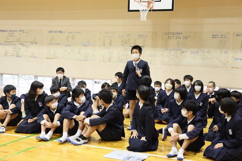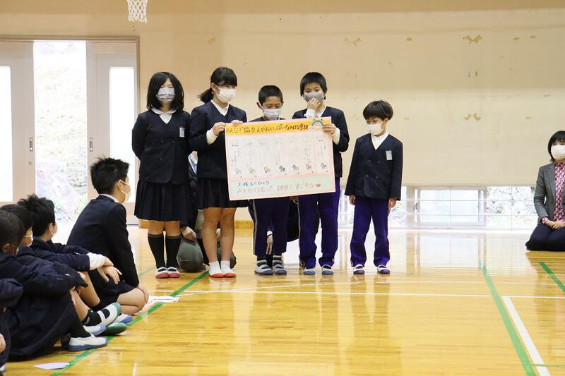 人権集会では、3学期の人権週間に各学級で学習した内容や、思いを発表しました。どの学級も、学びを深めたことが伝わるとてもすばらしい発表ができました。