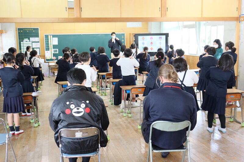 3月7日(火)③ 外国語活動の授業(2年生) 投稿日時 : 2023/03/07 学校サイト管理者 今日の3時間目、上天草市教育委員会社会教育課の山口さんと英会話講師ティム先生が、2年生のアンソニー先生の外国語活動を参観にいらっしゃいました。 帰られる際、2年生の反応のよさなどをたくさん褒めて行かれました。
