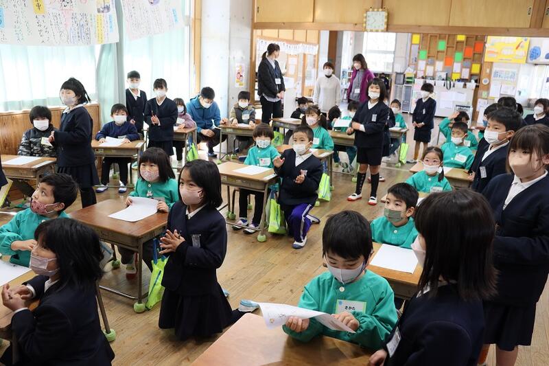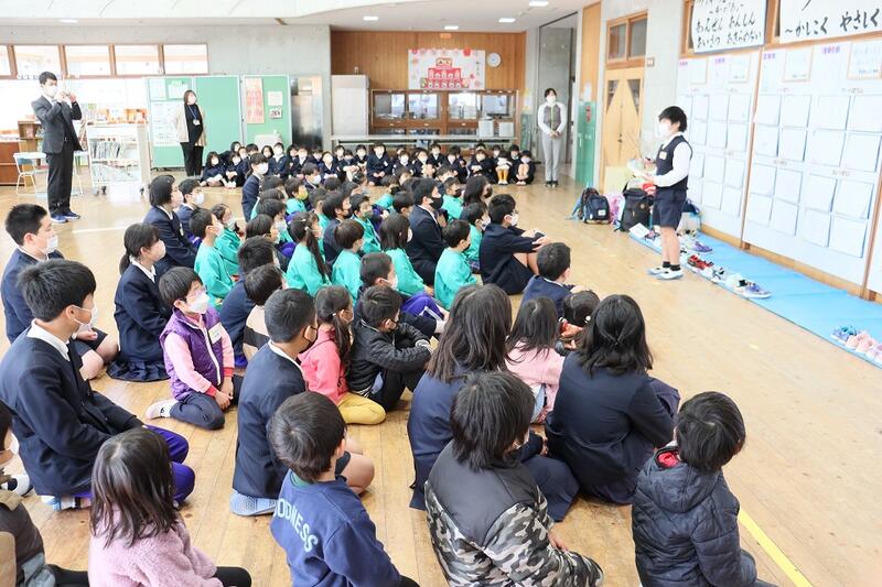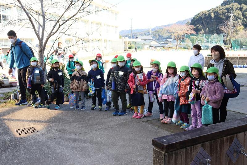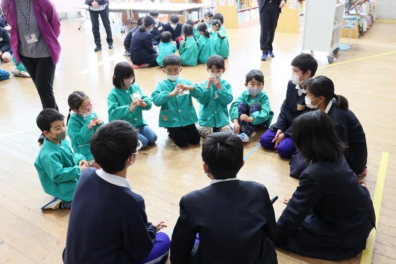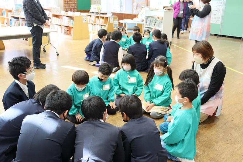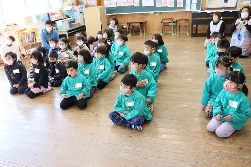 今泉保育園と松島保育園から、31人の年長さんたちが、歩いて本校まで来てくれました。