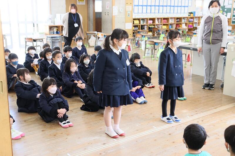 年長さんたちが帰る際、1年生がお見送りをしました。