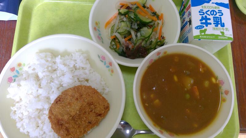 今日の献立は、勝つカレー、海藻サラダでした。今週末は中学生の部活動の集大成、中体連が開催されます。今週は、中体連応援食で願掛けメニューやスポーツに必要な栄養を特集した献立です。