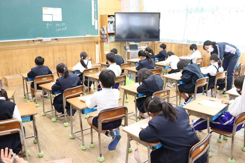 今日の5時間目、1・2年生が「今津っ子タイム」で国語や算数のプリント学習に頑張りました。