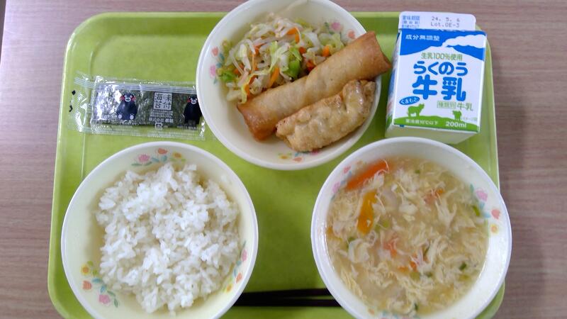 4月30日(火) 投稿日時 : 2024/04/30 学校サイト管理者 今日の献立は、ごはん、味付けのり、春巻き、(5年生以上ぎょうざ)、もやしのごまあえ、たまごスープでした。たまごスープは仕上げに入れる卵をふんわりとしたかき玉にすることが見た目とおいしさのポイントです。卵を入れる前に、水溶き片栗粉を入れて汁にとろみを付け、ぐつぐつと温度が上がった状態で卵を少しずつ流し入れ、大きくゆっくりかきまぜることできれいなたまごスープになりました! Tweet {{options.likeCount}} {{options.likeCount}} {{options.unlikeCount}} {{options.unlikeCount}} 0 コメント