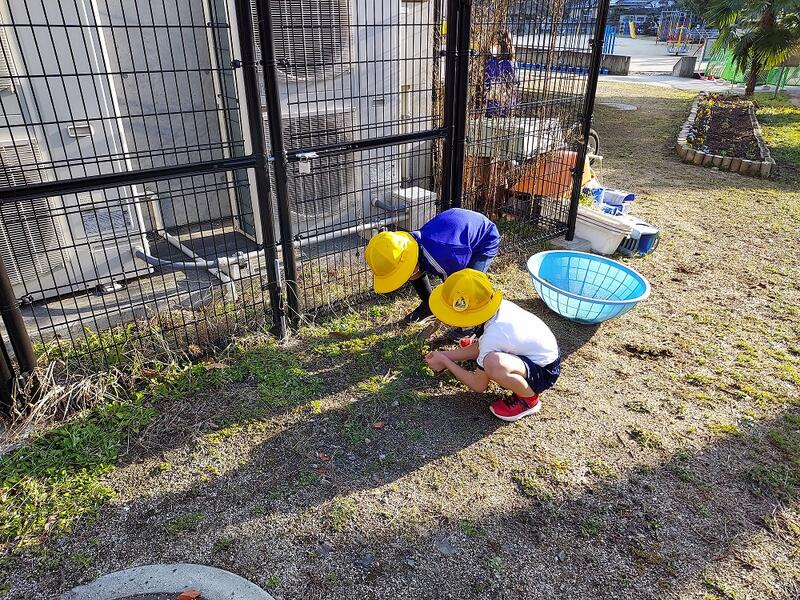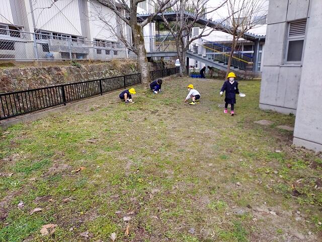 吹き溜まりに落ち葉がたくさんあるのを見つけ、掃き集めてくれる子もいました。