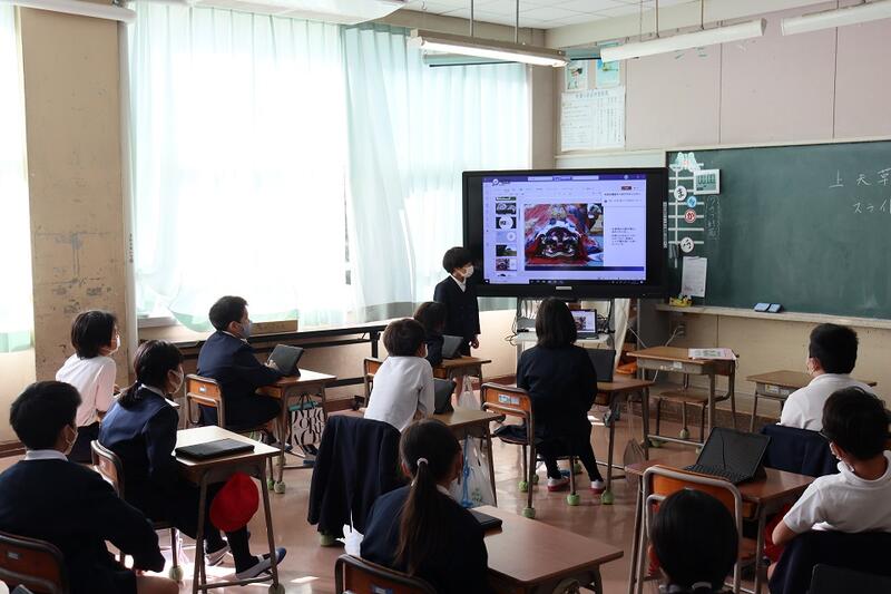 今日の3時間目、第2回児童総会を放送で行いました。発表者は放送室から行い、他の子どもたちは、各教室で電子黒板のプレゼン資料を見ながら聞き入りました。