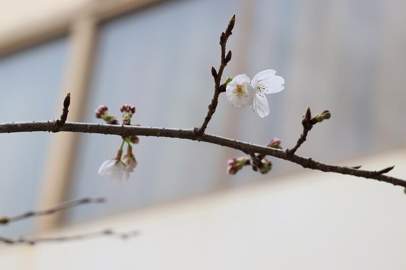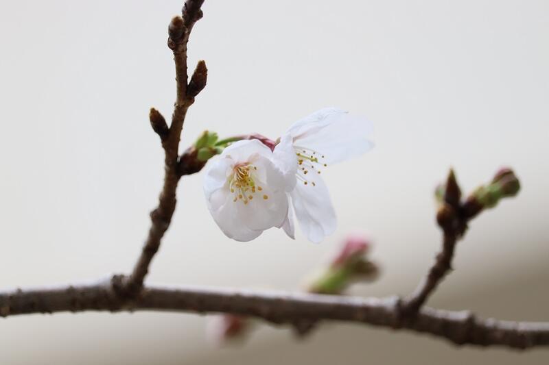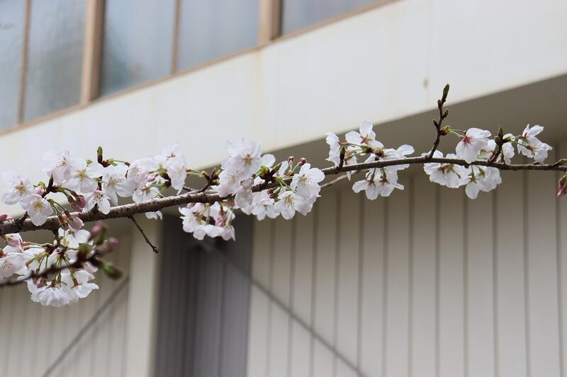 今日、体育館入口に一番近い桜が開花していました。まだ3輪ほどなので開花宣言とは言えないのかもしれませんが、来週には咲き進み、24日の卒業式を彩ることでしょう。