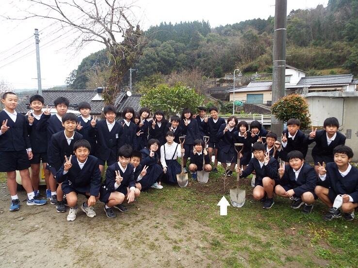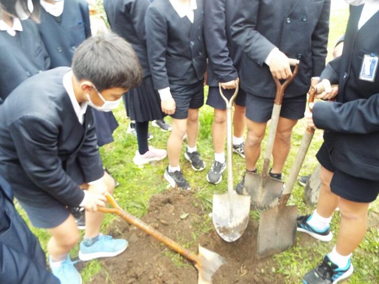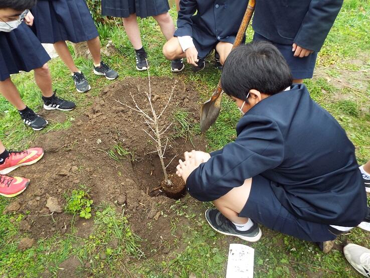 今日の1時間目、6年生が卒業の記念に桜の木を植樹しました。