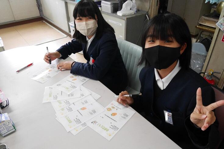 いただきますの号令の後、アートパンを一斉に裏返してもらいました。『キャ~』『わ~』など喜びの声が聞けたので嬉しかったです。片付けの後には、調理室に『6年間ありがとうございました!中学校でもよろしくお願いします!』とお礼の言葉を伝えにきてくれました。