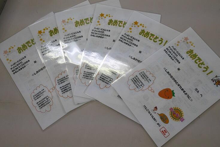 もし自分に入っていなくても、ひがむことなく、泉せんせ~い『○○さんに、ハッピー人参入ってましたよ!』とたくさんの子どもたちが教えてくれます。さらに入っていた人に対しては『よかったね~!ラッキーだったね!』とそんな囁きが聞こえてきます。このような小さな出来事の積み重ねが優しさ溢れる今津っ子に繋がっているんですね。