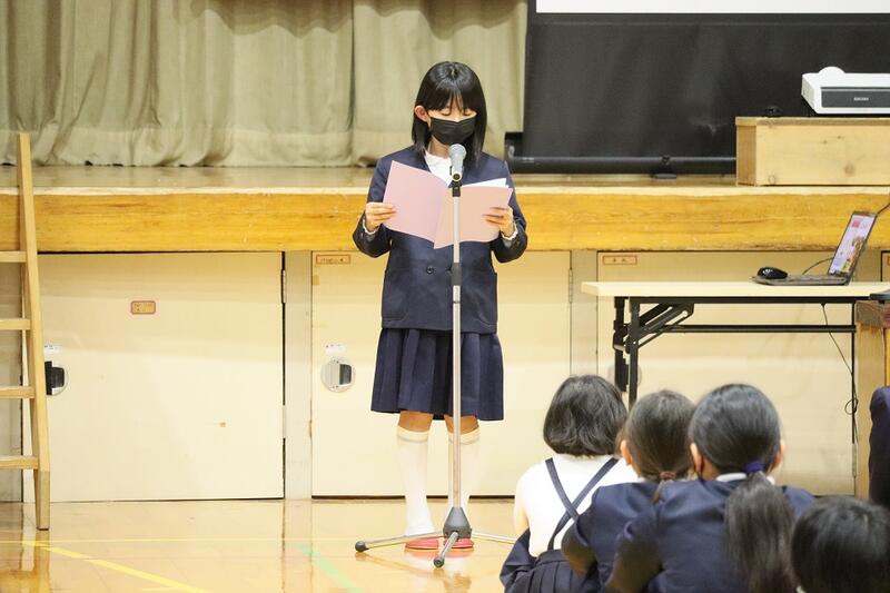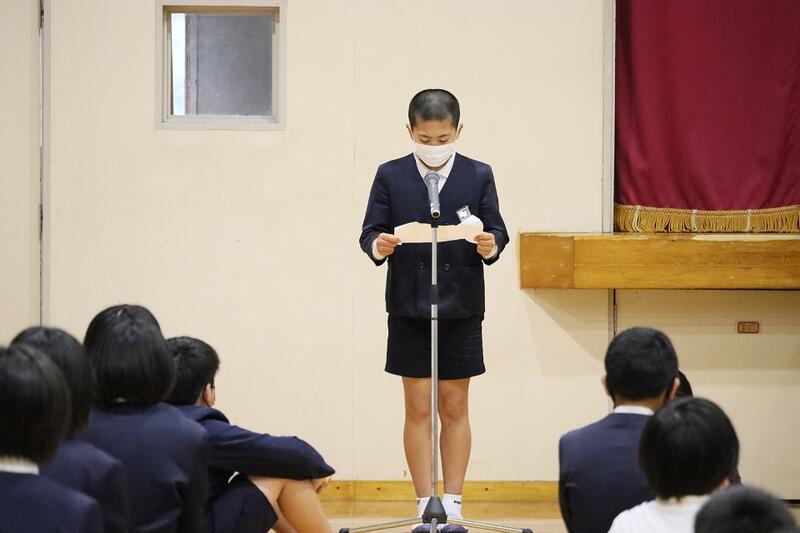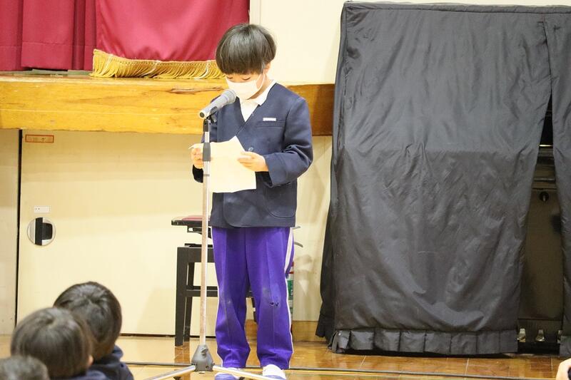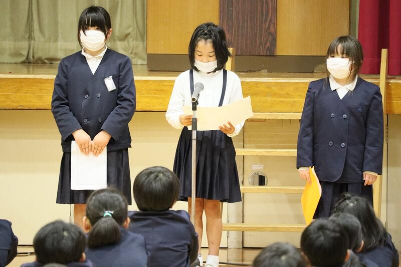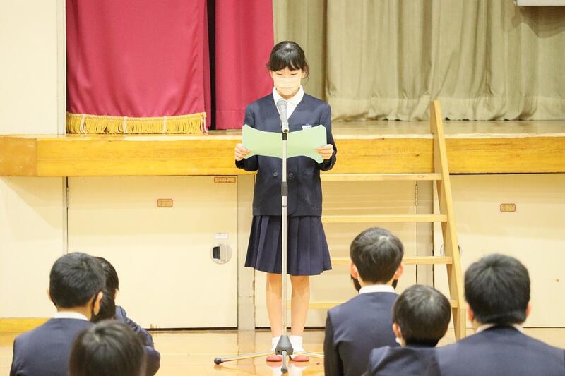 はじめに、各学級の代表が、学級目標の達成状況などについて発表しました。どの学級も、目標を意識して取り組んできたことがよく伝わる発表でした。