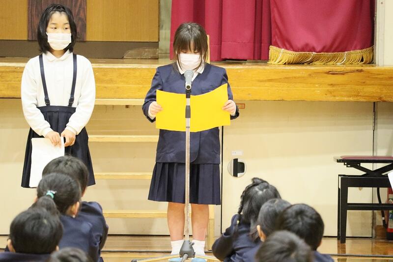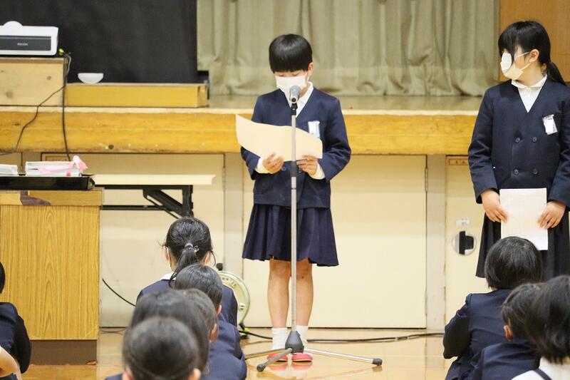 人権集会では、3学期の人権週間に各学級で学習した内容や、思いを発表しました。どの学級も、学びを深めたことが伝わるとてもすばらしい発表ができました。