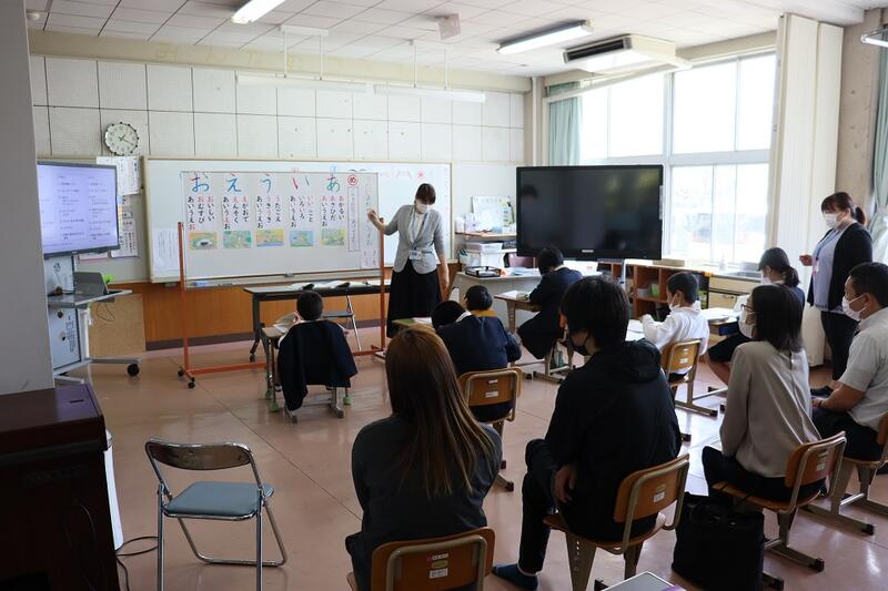 1年生教室では、国語の時間でした。きちんと教科書をもち、すばらしい姿勢で音読をしていました。日々成長中です。