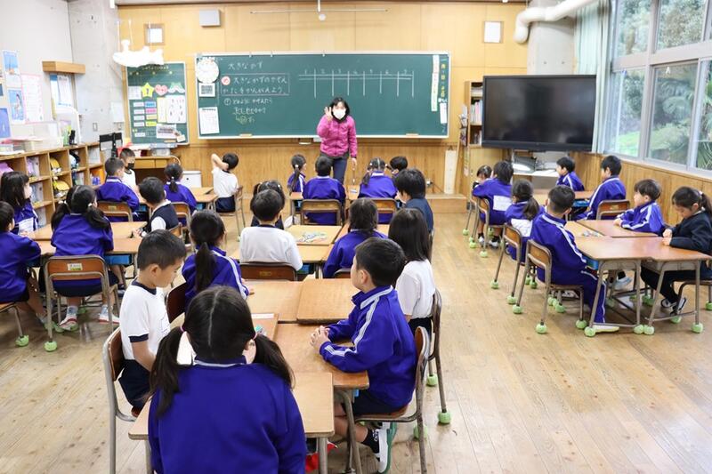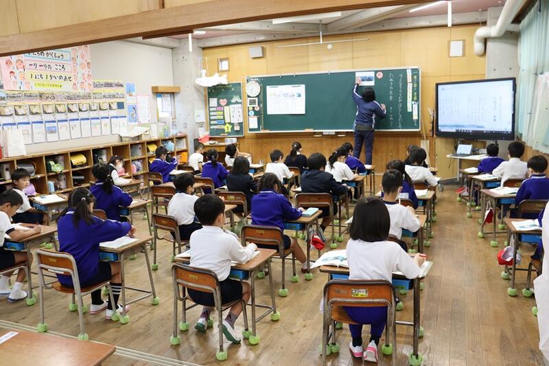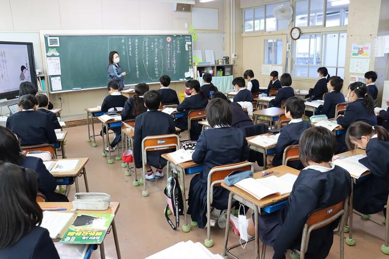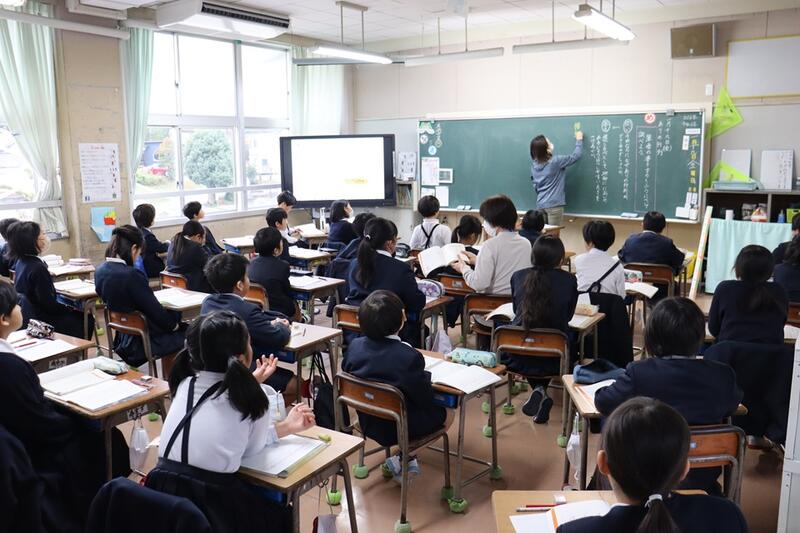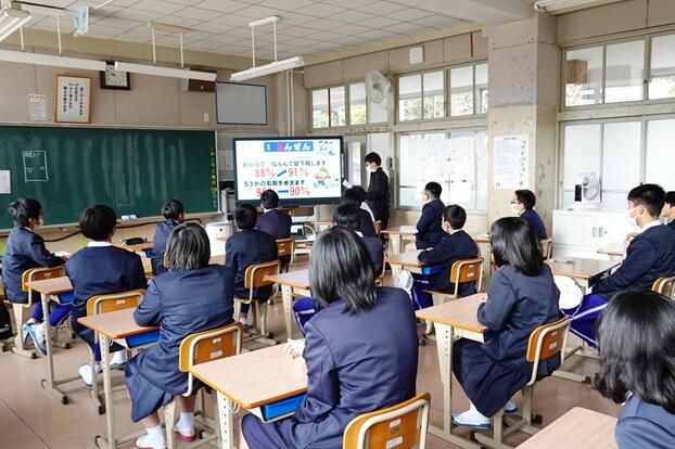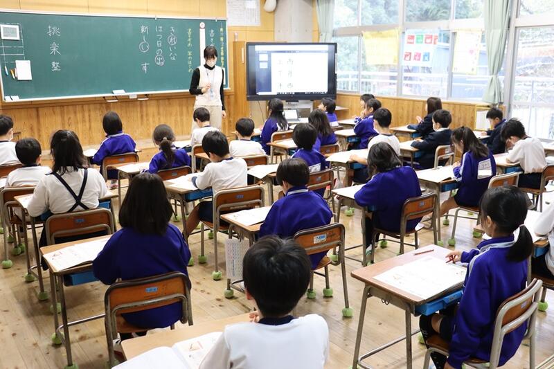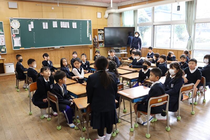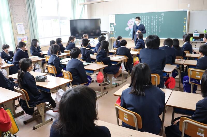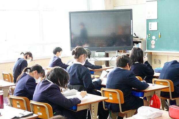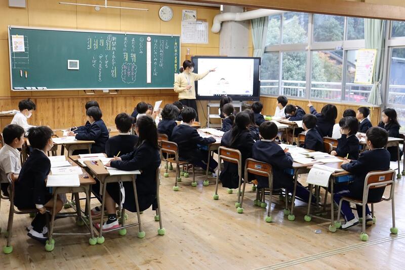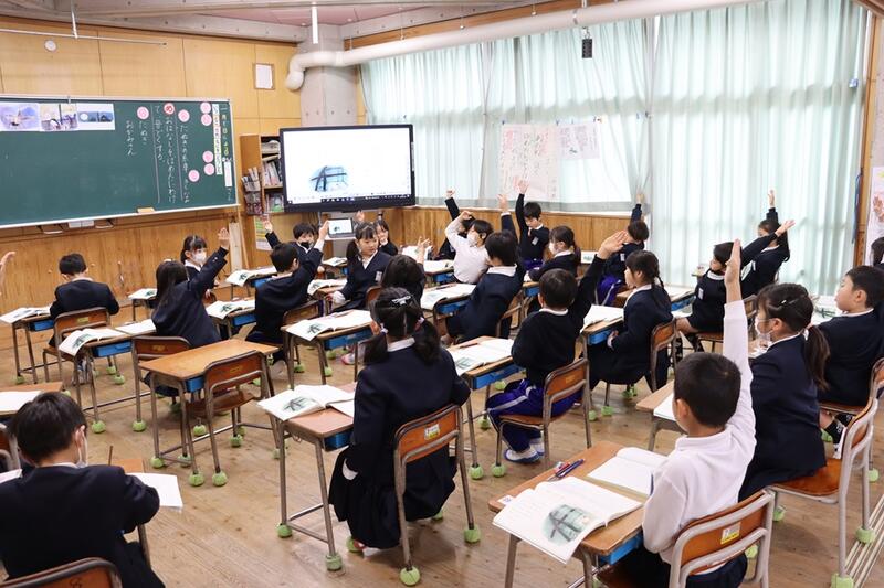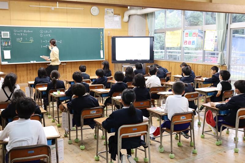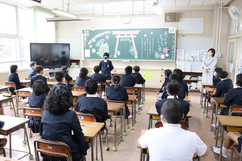子どもたちは、各教室で電子黒板をしっかりと見つめながら集中して聞くことができていました。