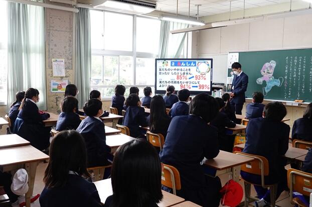6年教室だけは、実際に健康委員会が発表する様子を見て学び、感想を伝え合っていました。