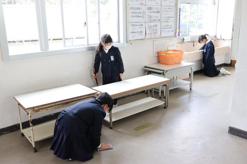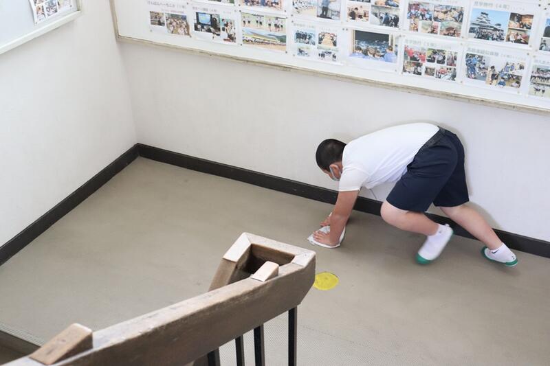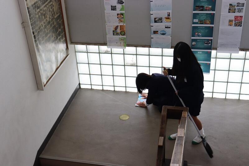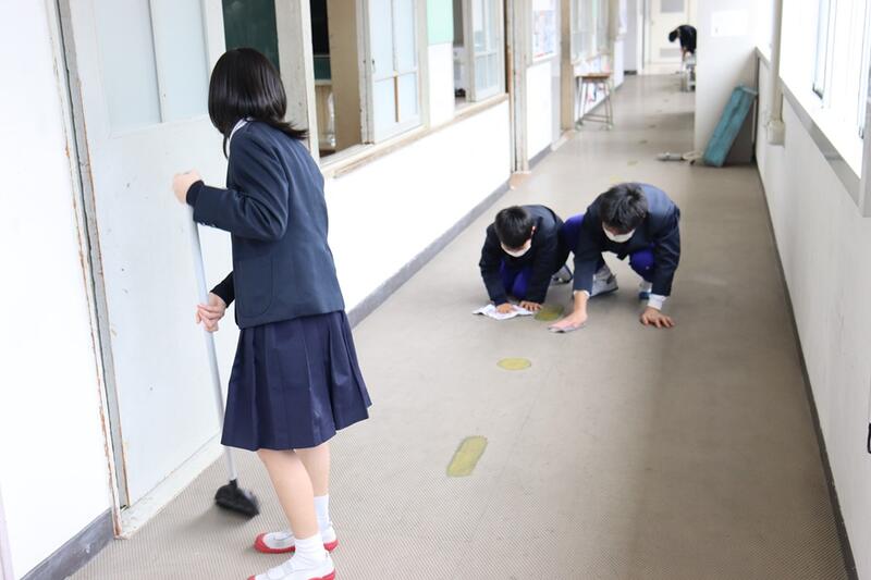昼休みには、3年生の3人が池上先生のお手伝いで、1階廊下のシミ磨きを頑張ってくれていました。