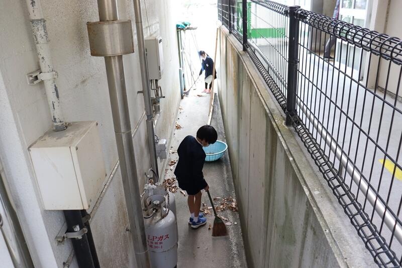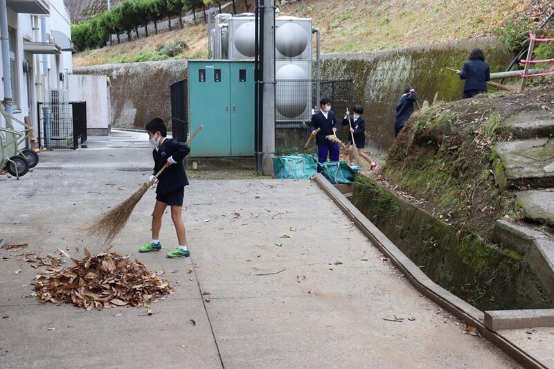 隅々まで掃いたり、雑巾で磨いたりと頑張っていました。外掃除の子どもたちは、落ち葉掃きを頑張ってくれていました。