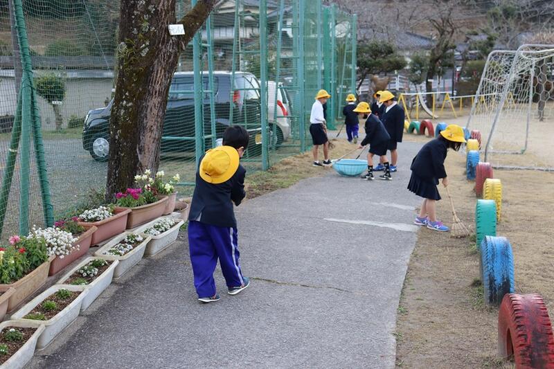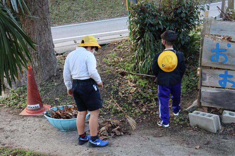 今朝も、運動場の草取りや落ち葉掃きを頑張ってくれていました。