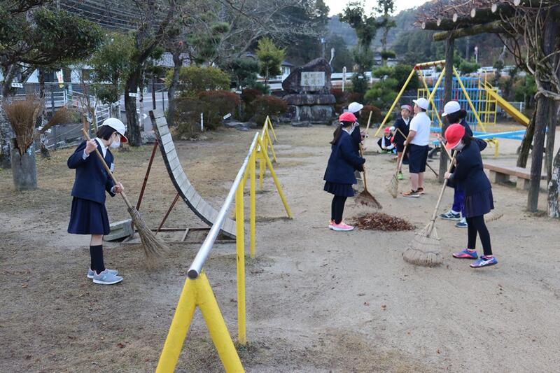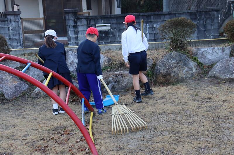 今朝も、運動場の草取りや落ち葉掃きを頑張ってくれました。