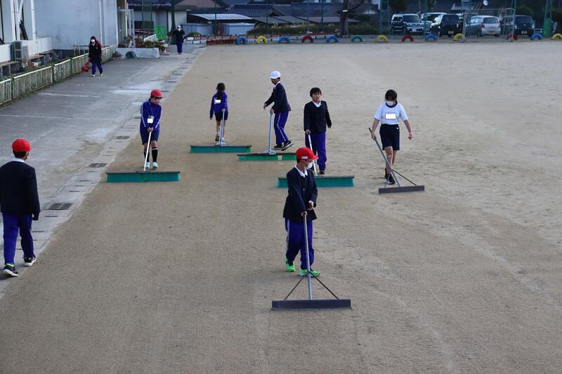 今朝は、運動場の落ち葉掃きや草取り、整地などを頑張ってくれていました。
