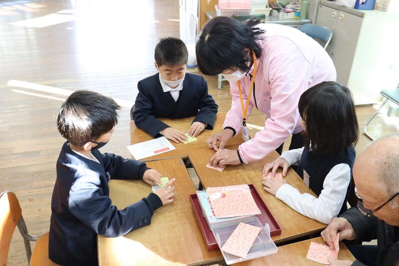 講師の皆様のおかげで、「けん玉」「折り紙」「だるま落とし」「山くずし」「お手玉」「おはじき」「かるた」「あやとり」「輪投げ」と、たくさんの昔遊びを体験することができました。