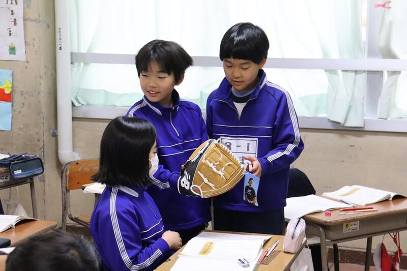 今日は、全学級を回して、各担任の先生が大谷選手の手紙を読み聞かせし、グローブを全員が触れる機会をもちました。