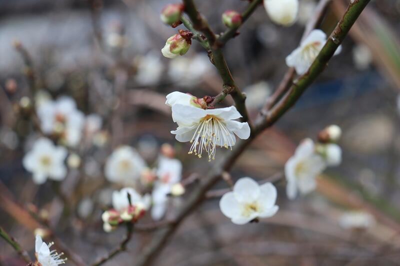 また、敷地内を歩いて回ると、数ヶ月前に植えた芝桜が小さい花を咲かせ、水仙もきれいな花が咲き、梅もここ数日で咲き進んでいます。