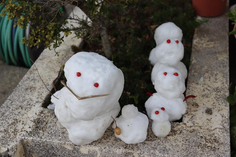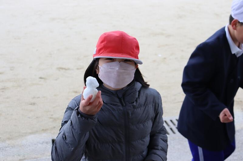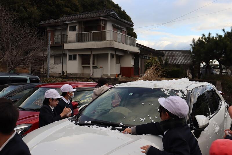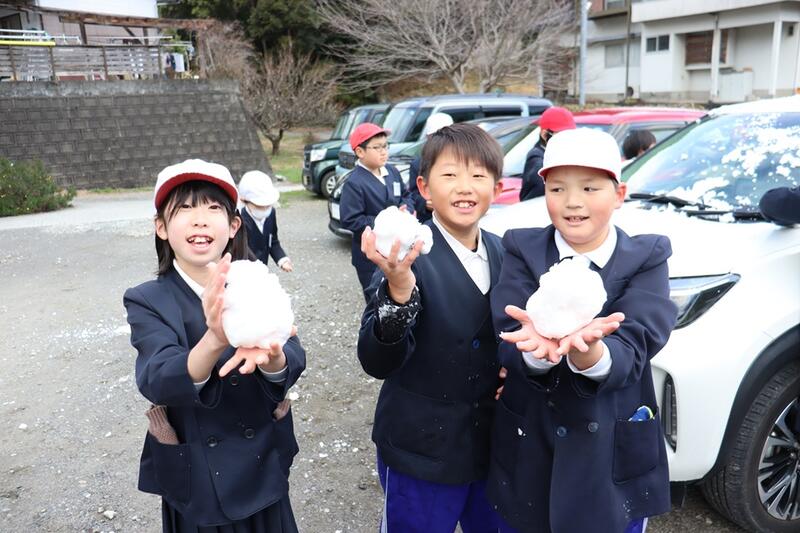ただし、龍ヶ岳から出勤している塚田先生の車には、5cm程の積雪がありました。先生から雪を下ろしてもらい、投げたり雪だるまつくりなどを楽しんでいました。