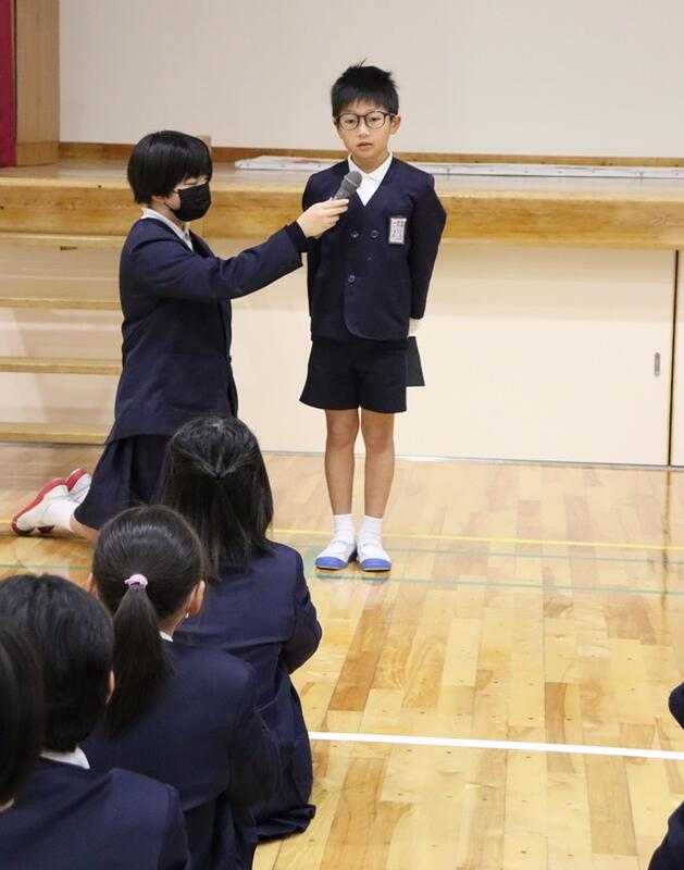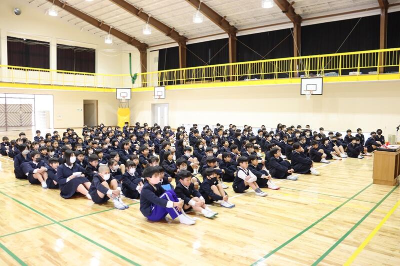発表の後は、校長からこの1年間の今津っ子の成長についての話と、命を守ることについての話などを行いました。また、その後、生徒指導担当から安全や命を守る話、養護から健康なくらしについての話などを行いました。