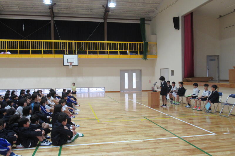 朝の児童集会では、学級代表の人たちが、『頑張ること』の発表をしてくれました。